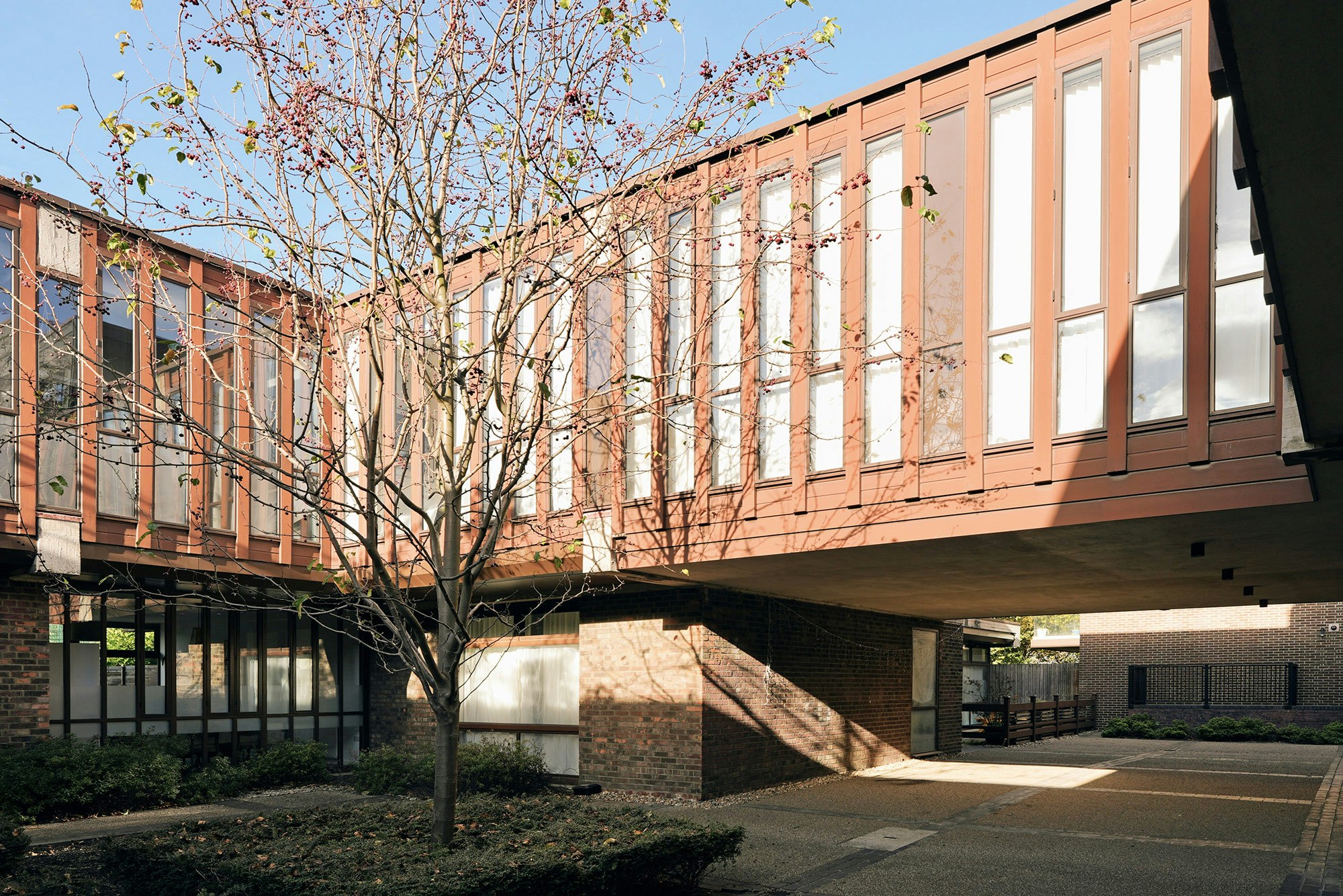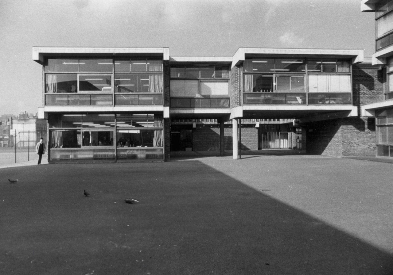 In 1964, the Lilian Baylis School rose in its place, a bold, optimistic statement of civic investment. Named after the pioneering theatre producer, well known for making high-quality theatre accessible under her leadership at The Old Vic, the school embodied similar ideals: openness, progress and public good. Designed by the Architects Co-Partnership for the London County Council, it was conceived as a series of pavilion buildings arranged around interconnected courtyards, a humane alternative to the more monolithic school designs of the era.